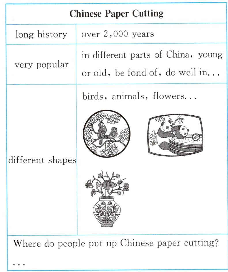 I think Chinese paper cutting is not only beautiful but also very useful. People usually put them up on doors or windows when they celebrate something happy, especially the Spring Festival. More and more people are interested in it. I hope you'll come to China to see Chinese paper cutting one day.