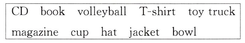 CD;book;volleyball;toy truck;magazine