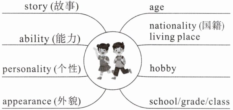 3. 结合短文内容、以上提问与以下思维导图,你知道应该从哪些方面来介绍一个人了吗?请根据你的个人情况完成下面的图表。