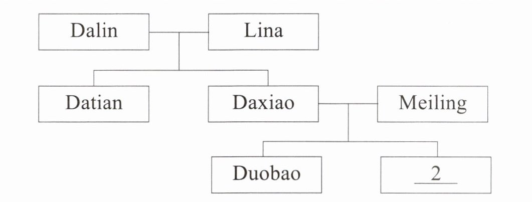 五、1. Family tree 2. Feifei 3. Going fishing 4. Reading 5. sports
