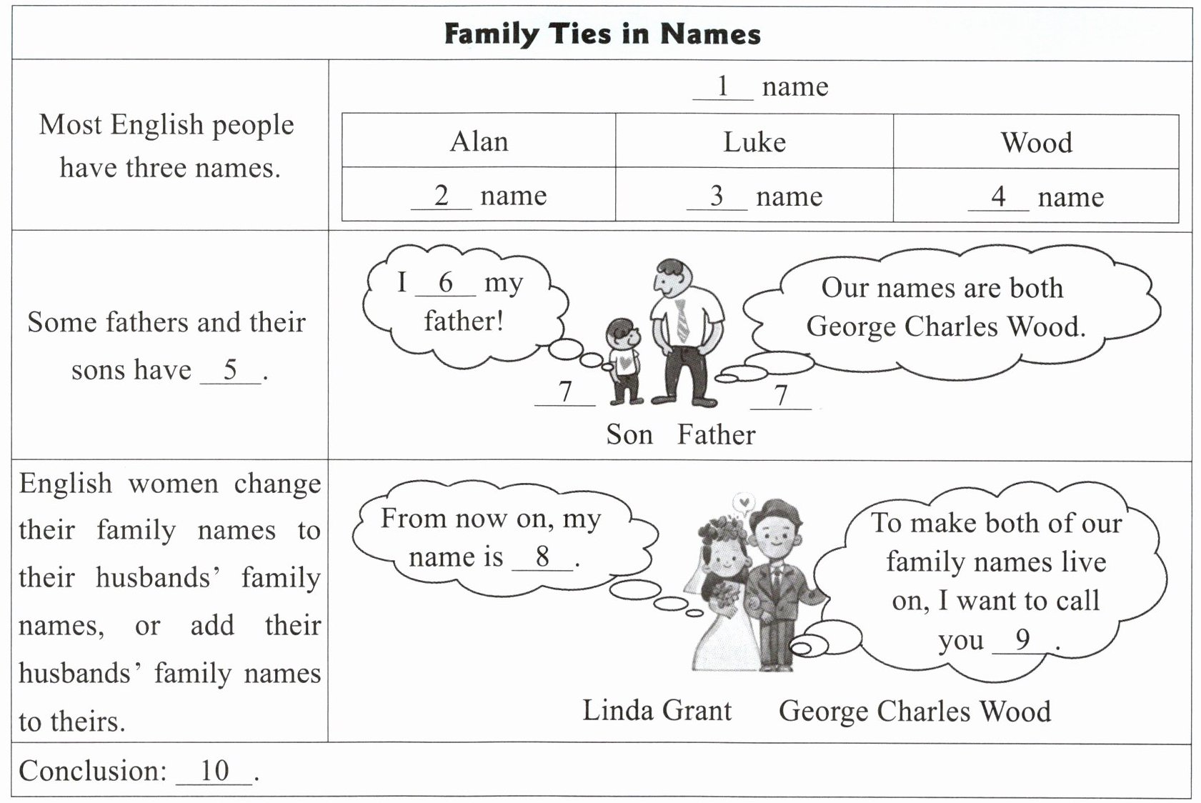 7. Chinese only have two names: first name and family/last name. And family name is in front of first name. In China, when women get married, they don't need to add their husbands' last names to their names.