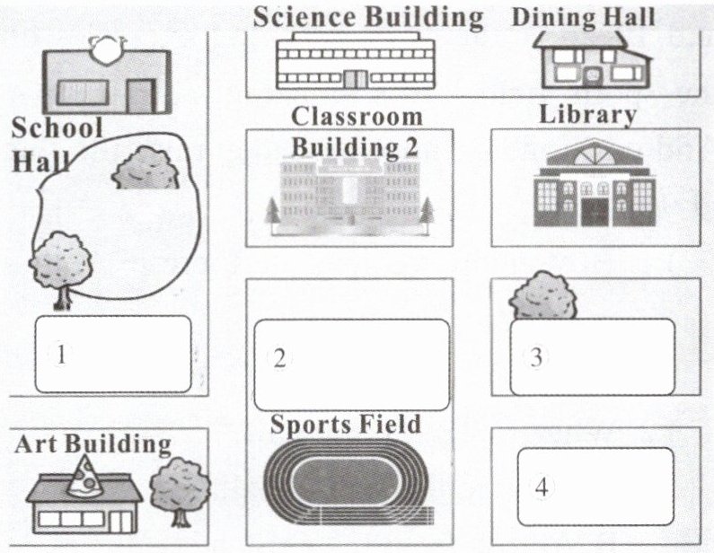 the classroom building 1.3. 根据图片内容补全对话。