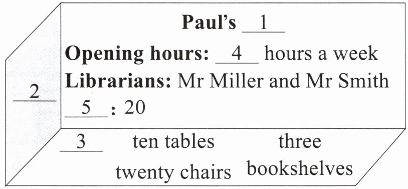 1.school library 2.Pictures of famous people 3.a locker 4.14 5.Seats