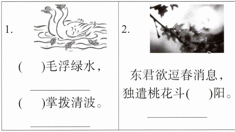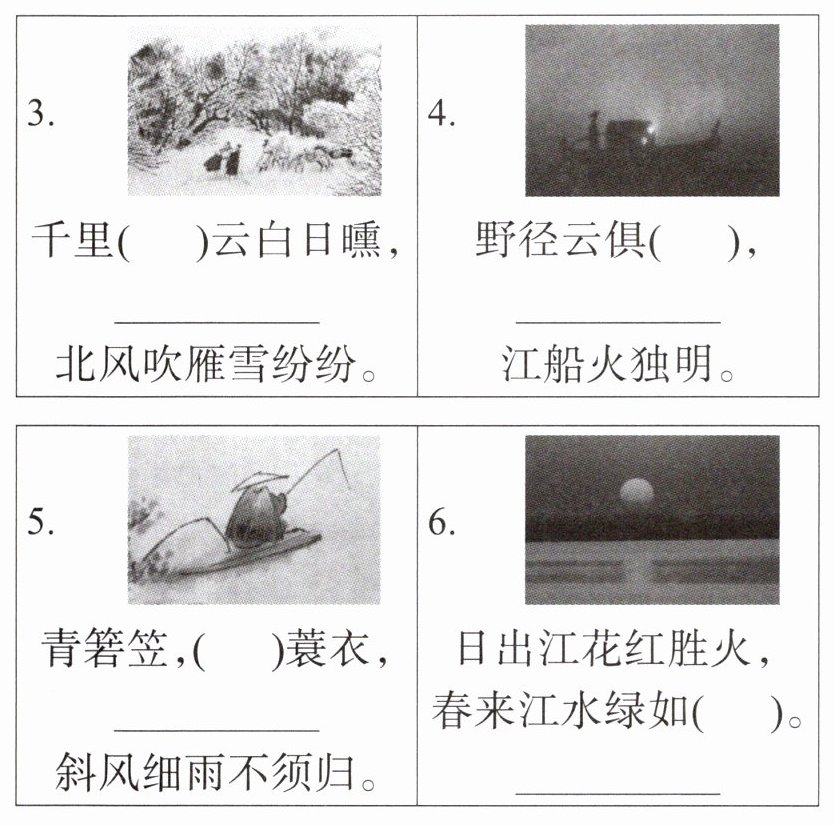 三、根据所学语文知识补全下面的诗句,并在横线上写出对应的英文单词。