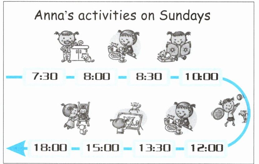 ) 3. What time does Anna have lunch on Sunday?A. At 11:30 a.m. B. At 12:30 p.m. C. At 1:30 p.m.