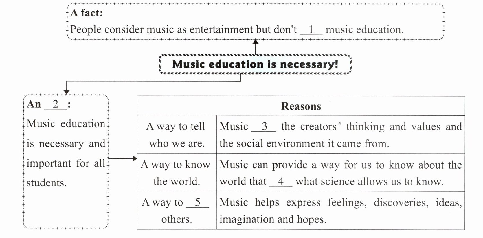 How important is music? When they are asked this question, students and parents usually answer that music is nice, but not very important. It is often considered only as entertainment (娱乐), but not the first choice for education. In fact, music education is necessary and important for all students.