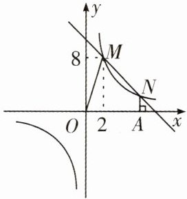 (2)解:点P是反比例函数第三象限内的图象上一动点,当点P为直线MN向下平移与反比例函数第三象限图象的唯一交点时,$\triangle PMN$的面积最小。