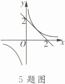 5. ▶中考热点•数形结合 如图,在平面直角坐标系中,直线$y= -x + 2与反比例函数y= \frac{k}{x}$的图象有唯一公共点,若直线$y= -x + b与反比例函数y= \frac{k}{x}$的图象有2个公共点,则$b$的取值范围是(