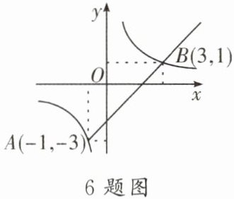 6. 如图,在直角坐标系中,一次函数$y_1= x - 2与反比例函数y_2= \frac{3}{x}的图象交于A,B$两点,下列结论正确的是(