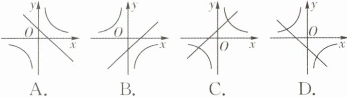 2. 在同一平面直角坐标系中,函数$y= mx + n与y= \frac{n}{mx}$(其中$m,n$是常数,$mn≠0$)的大致图象可能是(