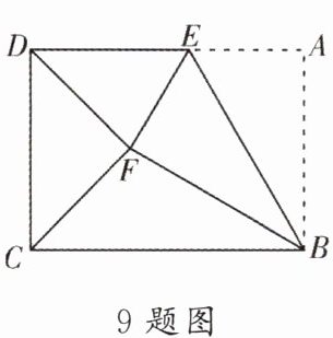 9. 如图,在矩形 ABCD 中,E 为 AD 边上一点,∠ABE= 30°,将△ABE 沿 BE 折叠得△FBE,连接 CF,DF,若 CF 平分∠BCD,AB= 2,则 DF 的长为