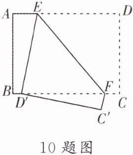 10. ▶中考热点•最值问题 如图,矩形纸片 ABCD 中,AB= 6,BC= 8,点 E,F 分别在边 AD,BC 上,将纸片 ABCD 沿 EF 折叠,使点 D 的对应点 D'在边 BC 上,点 C 的对应点为 C',则 DE 的最小值为