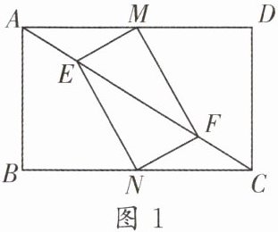 (1)如图 1,若 AE= CF= 1,M,N 分别是 AD,BC 的中点,求证:四边形 EMFN 为矩形.