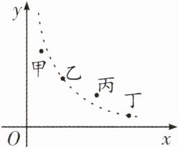 解:设乙、丁所在反比例函数解析式为$y = \frac{k}{x}(k > 0)$。