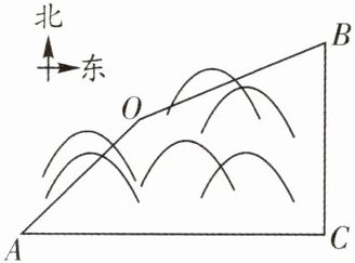 因为$\tan\angle OAC=\dfrac{OC}{AC}$,$\sin\angle OAC=\dfrac{OC}{AO}$,且$\angle OAC = 45^{\circ}$,所以$OC = AC = 540$千米,$AO=\dfrac{OC}{\sin45^{\circ}}=\dfrac{540}{\dfrac{\sqrt{2}}{2}}=540\sqrt{2}\approx540×1.4 = 756$千米。