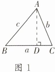 如图1,在△ABC中,∠BAC,∠B,∠C所对的边分别为a,b,c,求证:$S_{\triangle ABC}= \frac{1}{2}absinC= \frac{1}{2}acsinB= \frac{1}{2}bcsinA.$证明:过点A作AD⊥BC,垂足为D,