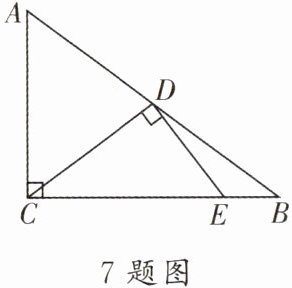 7. 如图,在Rt△ABC中,∠ACB= 90°,点D是AB的中点,连接CD,过点D作DE⊥CD,交BC于点E,若$tanA= \frac{4}{3},$BE= 7,则DE的长为