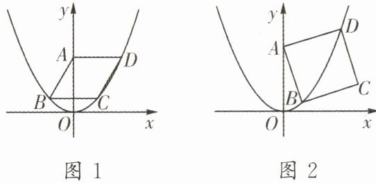 (2)如图1,已知菱形ABCD的顶点B,C,D在该二次函数的图象上,且$AD⊥y$轴,求菱形的边长.