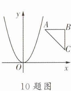 10. 如图,已知Rt△ABC的顶点坐标为$A(1,2)$,$B(2,2)$,$C(2,1)$,若抛物线$y= ax^2(a>0)$与该直角三角形无交点,则a的取值范围是