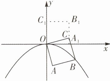 11. 如图,边长为2的正方形$OA_1B_1C_1的顶点A_1$在x轴的正半轴上,将正方形$OA_1B_1C_1$绕顶点O顺时针旋转75°得正方形OABC,使点B恰好落在函数$y= ax^2(a<0)$的图象上,求a的值.