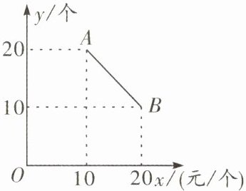 5. 某食品零售店新上架一款冷饮产品,每个成本为8元,在销售过程中,每天的销售量y(个)与销售价格x(元/个)的关系如图所示,当$10\leq x\leq20$时,其图象是线段AB,则该食品零售店每天销售这款冷饮产品的最大利润为