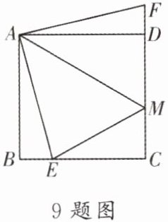 9. 如图,在边长为4的正方形ABCD中,点E是BC上一点,点F是CD延长线上一点,连接AE,AF,AM平分∠EAF交CD于点M.若BE= DF= 1,则DM的长度为