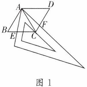 (2)如图2,当三角尺的两边分别与菱形的两边BC,CD的延长线相交于点E,F时,你在(1)中得到的结论还成立吗?说明理由.