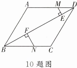 10. 如图,在菱形ABCD中,AB= 10,BD= 16,若M,N分别是边AD,BC上的动点,且AM= BN,作ME⊥BD,NF⊥BD,垂足分别为E,F,则ME+NF的值为