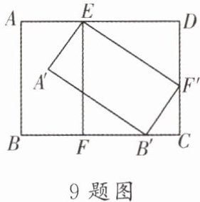 9. 如图,在矩形ABCD中,点E,F分别在AD,BC边上,且EF//AB.现将矩形ABFE绕点E逆时针旋转得到矩形A'B'F'E,点B',F'分别落在边BC,CD上.若F'C= 3,DF'= 4,则DE的长为______.