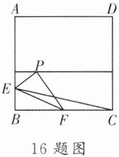 16. 如图,正方形ABCD中,AD= 4,E是AB上一点,且EB= 1,F是BC上一动点,若将$\triangle EBF$沿EF对折后,点B落在点P处,则点P到点D的最短距离为