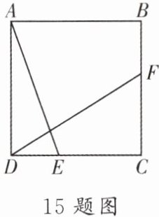 15. 如图,已知正方形ABCD中,点E,F分别在边CD,BC上,连接AE,DF.若$AB= \sqrt{15}$,DE= BF,则AE+DF的最小值为(