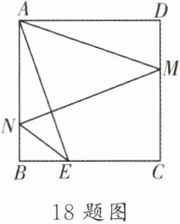 18. 如图,E为正方形ABCD中BC边上的一点,且AB= 12,BE= 5,M,N分别为边CD,AB上的动点,且始终保持$MN\perp AE$,则AM+NE的最小值为