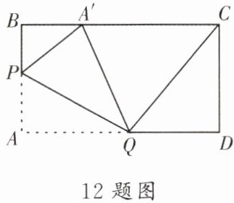 12. 如图,在矩形纸片ABCD中,AB= 6,AD= 10,折叠纸片,使点A落在BC边上的A'处,折痕为PQ,当点A'在BC边上移动时,折痕的端点P,Q也随之移动,若限定点P,Q分别在AB,AD边上移动,连接CQ,则$\triangle A'CQ$面积的最大值为