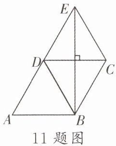 11. 如图,四边形ABCD为平行四边形,延长AD到点E,使DE= AD,且BE⊥DC,若△ADB是边长为3的等边三角形,点P,M,N分别在线段BE,BC,CE上运动,则PM+PN的最小值为