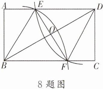 8. 如图,在矩形ABCD中,AB= 3,作BD的垂直平分线EF,分别与AD,BC交于点E,F. 连接BE,DF,若EF= AE+FC,则边BC的长为(
