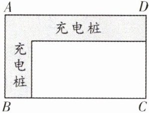 8. 新能源汽车如今已成为越来越多人购车的首选. 某停车场为了解决充电难的问题,现将长为100 m、宽为80 m的矩形停车场进行改造. 如图,将在矩形停车场沿着边AB和AD修建宽度相同的充电桩区域,剩余停车场的面积为$3500 m^2,$求充电桩区域的宽度是多少?