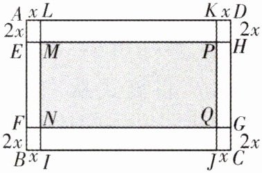 其中 AB=200 米,BC=300 米.准备在它的四周铺设道路,上下两条横向道路的宽度都为 2x 米,左右两条纵向道路的宽度都为 x 米,中间部分种植水果.已知道路的路面造价是每平方米 50 元;出于货车通行等因素的考虑,横向道路宽度 2x 不超过 24 米,且不小于 10 米.