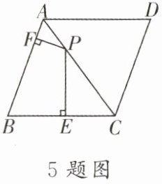 5. ▶中考热点•转化思想 如图,在菱形ABCD中,P是对角线AC上一动点,过点P作PE⊥BC于点E,PF⊥AB于点F. 若菱形ABCD的周长为24,面积为24,则PE+PF的值为