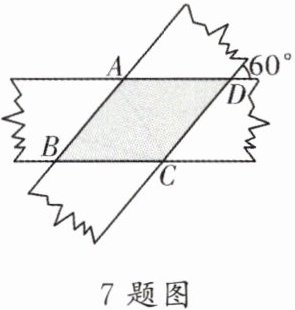 7. 如图,两张宽度均为3 cm的纸条交叉叠放在一起,交叉形成的锐角为60°,则重合部分构成的四边形ABCD的周长为