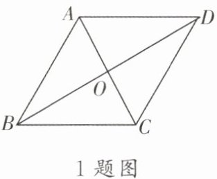 1. 如图,在菱形ABCD中,对角线AC,BD交于点O,若菱形ABCD的面积是12,则△AOB的面积为(