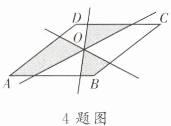 4. 如图,四边形ABCD是菱形,O是两条对角线的交点,过O点的三条直线将菱形分成阴影和空白部分. 当菱形的两条对角线的长分别为6和8时,阴影部分的面积为