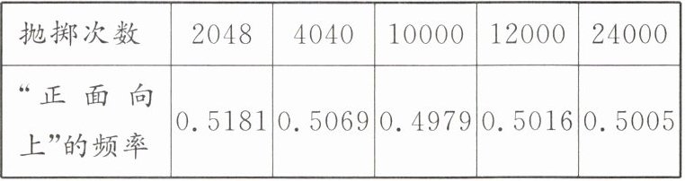 3. 历史上,有些人曾做过成千上万次抛掷硬币的试验,其中一些试验结果如表,由此估计重复抛掷一枚硬币时,“正面向上”的概率是