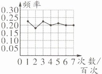 1. 数学课上,王老师与学生们做“用频率估计概率”的试验:不透明袋子中有8个白球、6个红球、4个黑球和2个黄球,这些球除颜色外无其他差别. 从袋子中随机取出一个球,某一颜色的球出现的频率如图所示,则该球的颜色最有可能是(