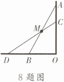 8. ▶中考热点·生活情境 如图,一架梯子AB斜靠在竖直的墙上,点M为梯子AB的中点,当梯子底端向左水平滑动到CD的位置时,滑动过程中OM的长度将(