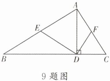 9. 如图,在△ABC中,AD是高,E,F分别是AB,AC的中点,若AB= 10 cm,AC= 8 cm,则四边形AEDF的周长为