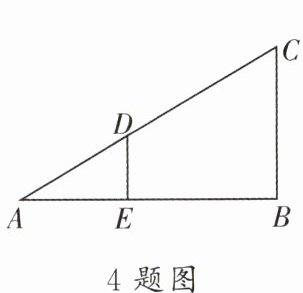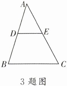 4. 如图,在△ABC中,DE//BC,若AE= 2,BE= 3,BC= 3,则DE的长为(
