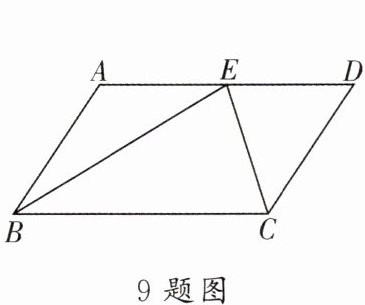 9. 如图,在□ABCD中,AD= 10 cm,CD= 6 cm,E为AD上一点,且BE= BC,CE= CD,则DE=