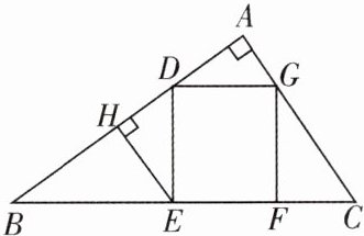 11. 如图,正方形DEFG内接于Rt△ABC,EF在斜边BC上,EH⊥AB于点H. 求证: