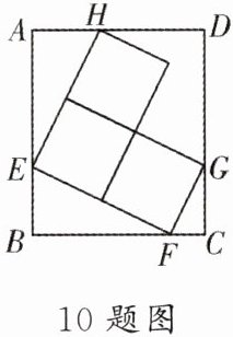 10. ▶中考热点·模型思想 如图,在长方形ABCD中,内接三个大小相同的正方形,点E,F,G,H分别在边AB,BC,CD,AD上,若AB= 12 cm,BC= 10 cm,则每个小正方形的边长为