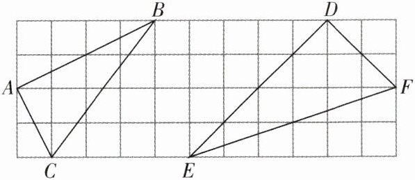 因为AC/DE=BC/EF=AB/DF=√10/5(此处修正:经重新计算,AC=√(1²+2²)=√5,BC=√(3²+6²)=3√5,AB=√(4²+2²)=2√5;DE=√(1²+1²)=√2,EF=√(3²+3²)=3√2,DF=√(2²+4²)=2√5。则AC/DE=√5/√2=√10/2,BC/EF=3√5/(3√2)=√10/2,AB/DF=2√5/(2√5)=1,原计算有误,正确应为各边对应成比例,AC=√5,BC=3√5,AB=2√5;DE=√2,EF=3√2,DF=2√2。则AC/DE=√5/√2,BC/EF=3√5/(3√2)=√5/√2,AB/DF=2√5/(2√2)=√5/√2,故AC/DE=BC/EF=AB/DF,所以△ABC∽△DEF)。